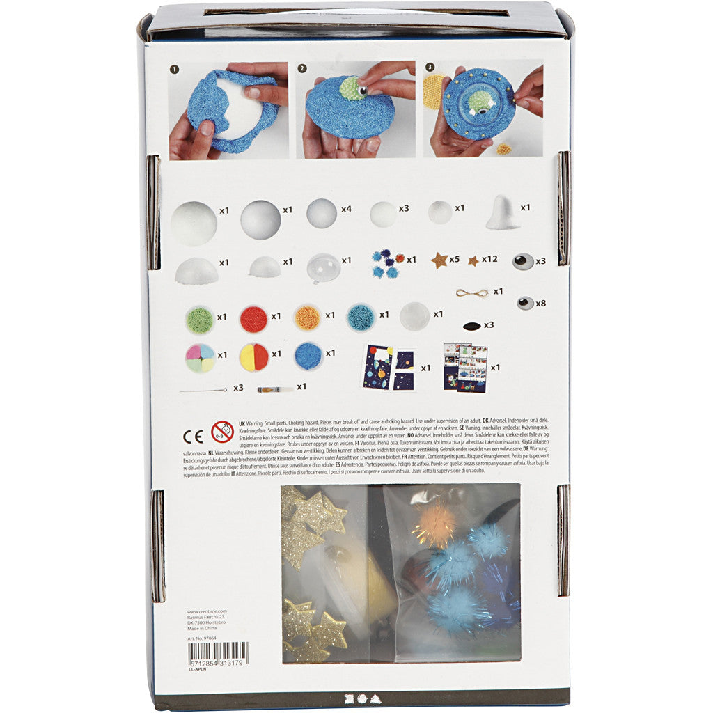 Materialset med rymdtema som gör det kul att utforska universum och dess roliga rymdvarelser. Innehåller kreativa material för att forma temafigurer med Pearl Clay, Silk Clay® och Foam Clay®