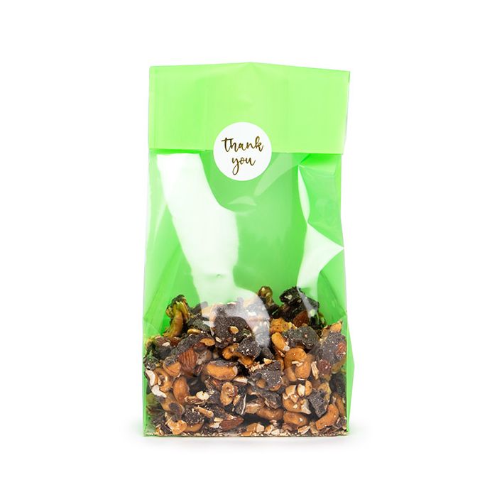 De unika och ljusa Neon Block Bottom-påsarna har en rolig lunchpåsedesign och ljusa färger för att bli uppmärksammade. FGPB1NG är tillverkad av livsmedelssäkert, värmebeständigt OPP-material och mäter 12,7x7,6x30,5 cm. Dessa påsar på 40 mikron är lämpliga för bakverk, lösviktsgodis, ljus, pysselartiklar, husdjurstillbehör, kosmetika, gåvor, partynöjen och mycket mer! Den genomskinliga framsidan gör att din produkt syns tydligt, medan den neongröna baksidan och sidopanelerna garanterat kommer att väcka uppmärksamhet. Varje påse levereras med en vit pappersinsats för stabilitet och har en öppen ände för enkel laddning. Som pricken över i kan du försluta påsarna med en värmeförslutare, en färdigsydd rosett, lint eller vika ner toppen och fästa med en etikett eller ett klistermärke.