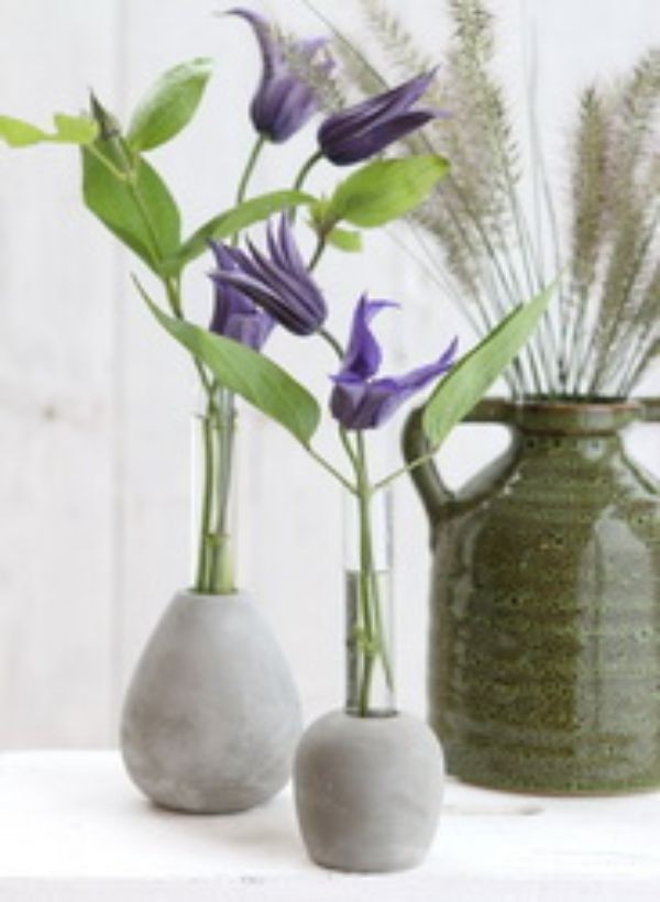 Vi känner att vi verkligen har hittat det vackraste sättet att dekorera ditt rum. I dessa cementbottnar finns ett teströr i klart glas. Perfekt för att visa upp en enda blomma!