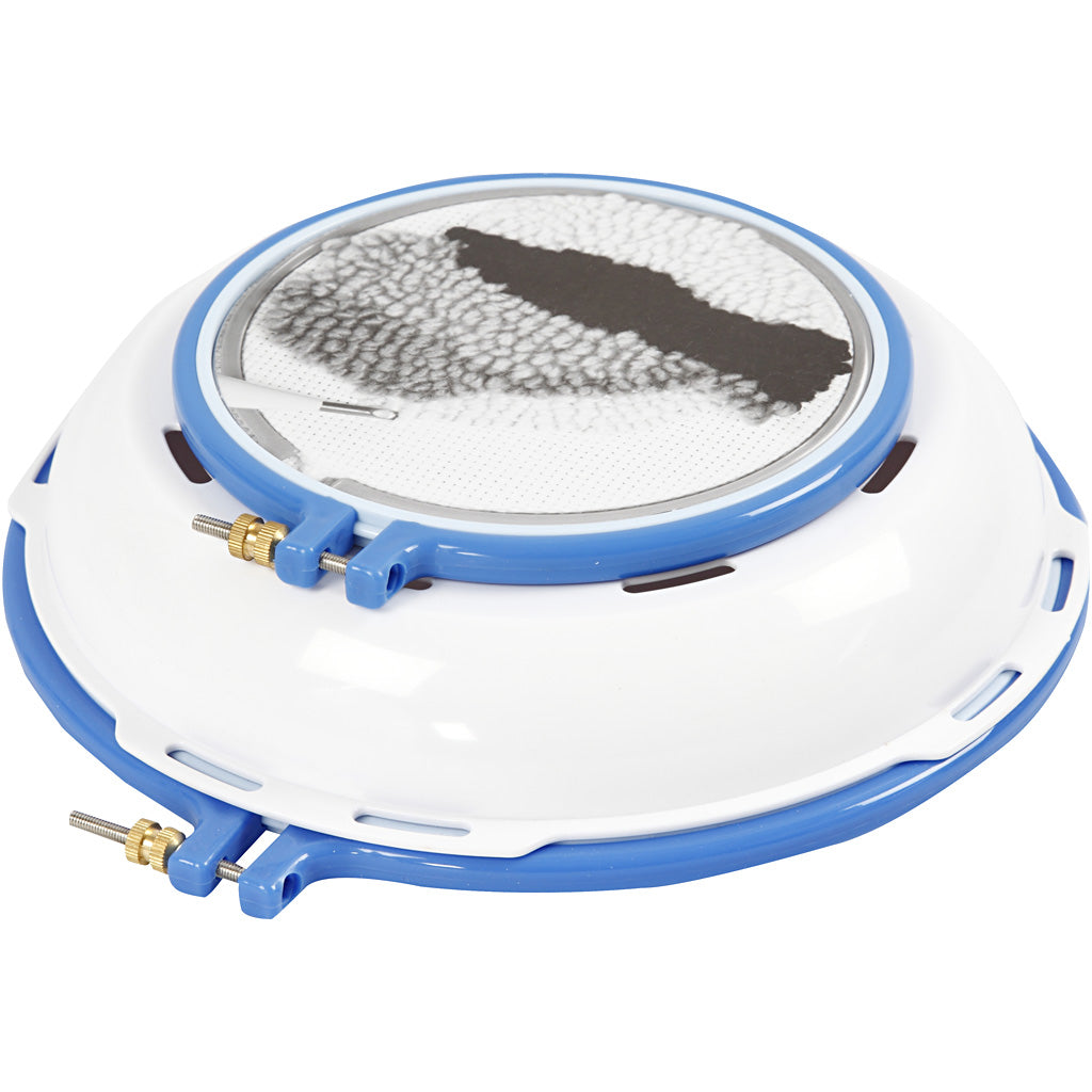 Praktisk och användbar broderiskål i plast med spänne i metall för att sätta fast broderityg. Specielt designad för needle punch. Beskrivning medföljer
