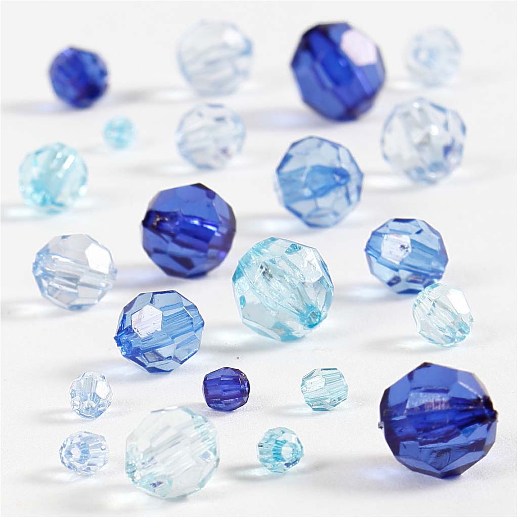 Facettpärlor, stl. 4-12 mm, Hålstl. 1-2,5 mm, ca. 170 st., blå harmoni, 45 g/ 1 förp. [HOB-618821]