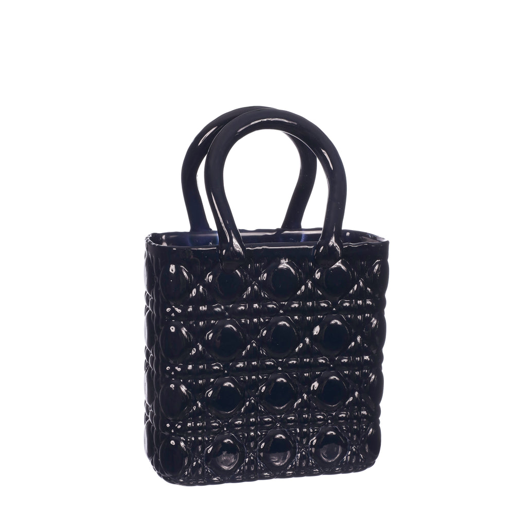 Glasblomvas i form av en handväska