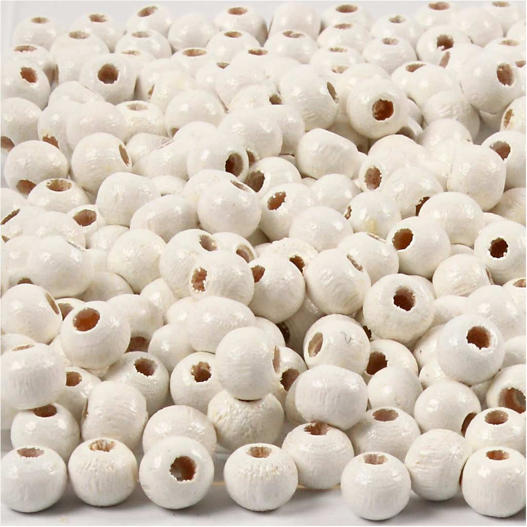 Träpärlor, Dia. 5 mm, Hålstl. 1,5 mm, ca. 150 st., vit, 6 g/ 1 förp. [HOB-570392]