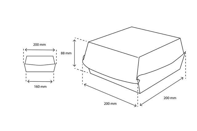 Med storleken 20x8,8x20 cm är dessa lådor extremt lämpliga för större hamburgare, och dessa är idealiska för till exempel take-away men även för att packa en hamburgare för direkt konsumtion.