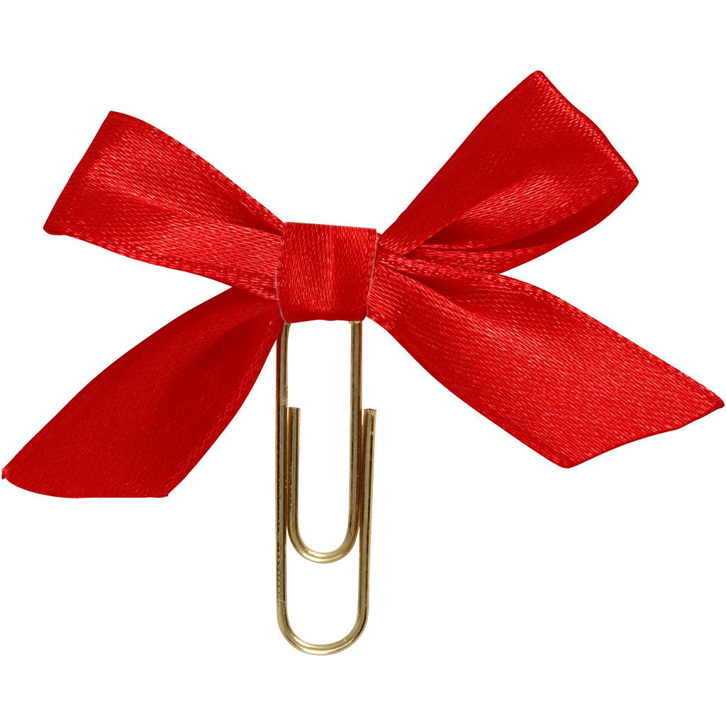 Förgyllda metallgem med pålimmad rosett av satinband. Används som dekoration och effekt på kort, inbjudningar, presenter, scrapbooking, planering och mycket mer.