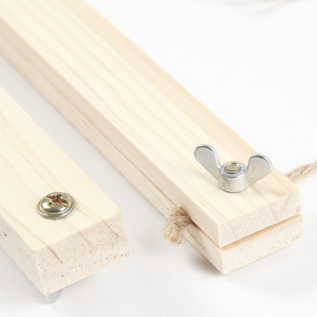 Set av posterlister i ljust trä bestående av 2 topp- och 2 bottenlister, i vilken upphänget fixeras med hjälp av vingmuttrar. Levereras med separat upphängningssnöre som säts fast med en knut på undersidan av topplisterna