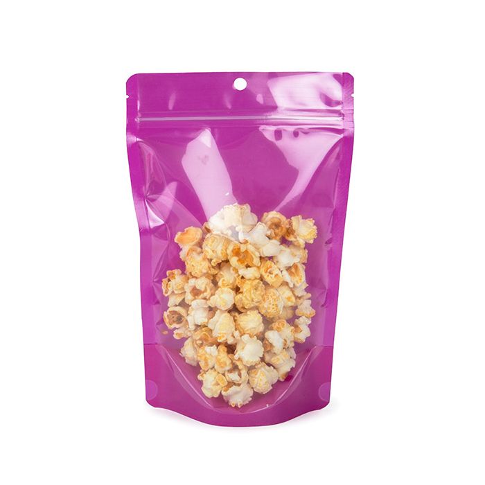 Söker du en ljus och rolig förpackningslösning för din produkt? Neonfärgade ståpåsar är den perfekta kombinationen av praktiskt och iögonfallande. ZBGN7PR är vår neonlila ståpåse som mäter 14,9 x 8,9 x 23,2 cm och är utformad för 311gr torrvaror. Den här påsen har en genomskinlig framsida som visar föremålen inuti och en neonlila insida och baksida. Den här påsen är utformad för att stå själv, men har också ett runt hängande hål ovanför det återförslutningsbara greppet om hyllutrymmet är begränsat. Livsmedelssäker och värmeförseglingsbar.